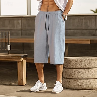 Homme Shorts Shorts en Lin Shorts d'été Shorts de plage Cordon de serrage Taille Élastique Uni Confort Respirant Longueur Genou Extérieur Plage Fête Vacances Designer Bleu Blanche Non Elastique