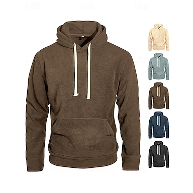 Homme Sweat à capuche Pull Sweat à capuche en polaire Noir bleu marine Kaki Gris foncé Café À capuche Uni Cordon de serrage Avec Poches Sport & Loisir Occasionnel Quotidien Streetwear Vêtements de