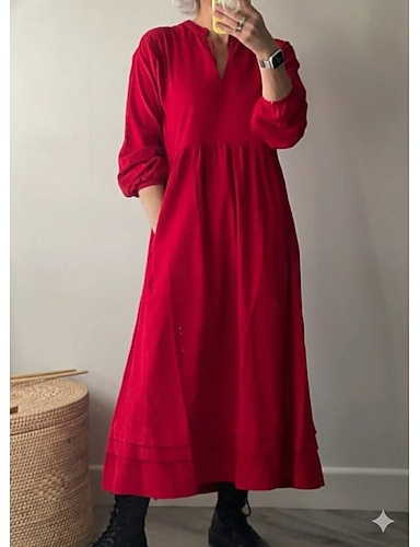 Femmes Robe Midi Faux coton lin Robe fourreau Robe Décontractée Robe en Coton Mode Moderne Quotidien Week-end Coupe Ample Uni manche longue Col en V Bleu Rose Claire Vert Kaki Été Printemps