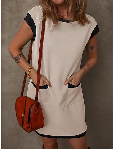 Femmes Mini Robe Robe Décontractée Robe fourreau Robe d'été Élégant Mode Moderne Extérieur Vacances Sortir Coupe régulière Uni Manche Courte Col ras du cou Bleu Noir Rose Claire Marron Été Printemps