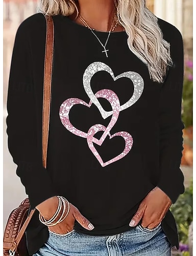 La Saint-Valentin Femmes T-shirt Imprimé Cœur Graphique Mode Élégant Classique manche longue Col ras du cou Hauts Réguliers Quotidien Week-end Bleu Noir Rose Claire Rouge Été Printemps Automne