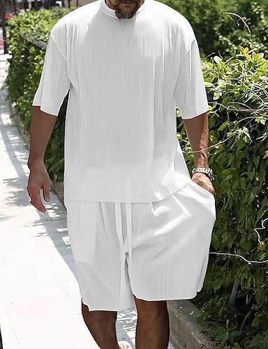 Homme Jacquard Ensemble Survetement T-shirt et short Ensemble Ensemble de tenues Col Ras du Cou Extérieur du quotidien Des sports Poche Cordon 2 Pièces Plein Noir Blanche Vert Claire Polyester Tenues