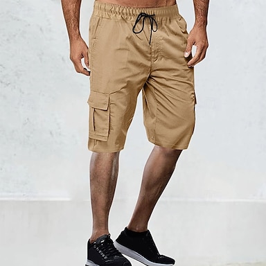 Homme Short Cargo Short Bermuda Cordon Taille elastique Multi poche Plein Respirable Evacuation de l'humidité Longueur genou Extérieur Casual Course Mode Vêtement de rue Noir Vert Micro-élastique
