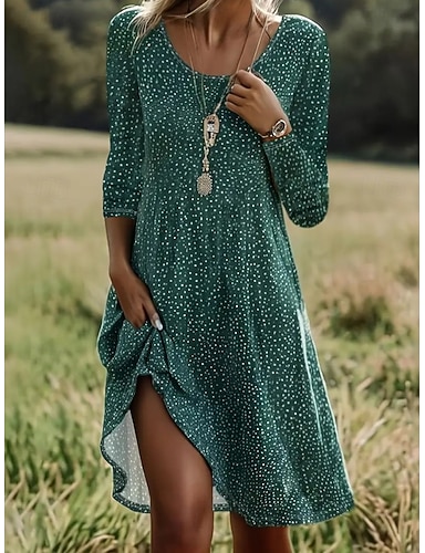 Femmes Robe Midi Robe fourreau Occasionnel Quotidien Fête Coupe régulière Fleuri Graphique manche longue Col ras du cou Bleu Rose Claire Violet Vert Été Printemps