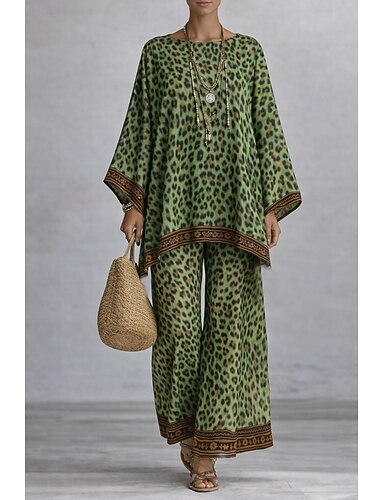 Femmes Ensembles de Pantalons manche longue Col rond Graphique Léopard Imprimé Mode Streetwear Occasionnel Quotidien Extérieur Bleu Violet Vert Printemps & Été Coupe Ample