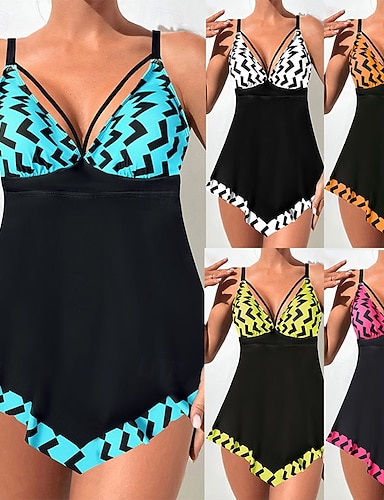 Femmes Maillots de Bain 2 pièces Coquin Maillot de bain Dos nu Vacances Tenues de plage Graphique Col en V Sans manches Maillots de bain