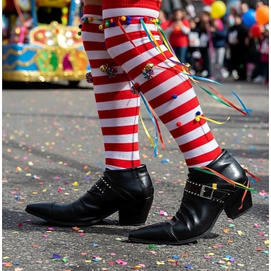 Chaussures noires à talons pointus pour hommes de Mardi Gras avec boucle cloutée mode tendance pour le carnaval les fêtes et les événements nocturnes