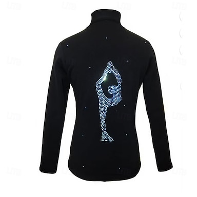 Veste polaire de patinage artistique Femmes Fille Patinage Veste Top Noir Patchwork Spandex Élastique Entraînement Compétition Tenue de Patinage Chaleur Thermique Classique cristal pailleté manche