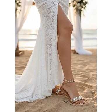 Sandales plates de mariée perlées avec bride cheville – chaussures élégantes pour un mariage de plage à l'étranger
