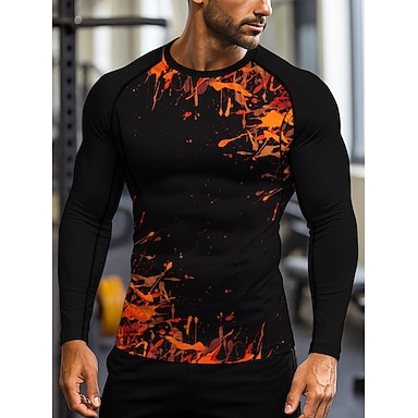 Homme T-shirt de course T-shirt athlétique T-shirt de Gym T-shirt de Fitness Chemise d'entraînement manche longue T-shirt Abstrait UPF 50 Résistant aux UV Doux Évacuation de la transpiration Vélo
