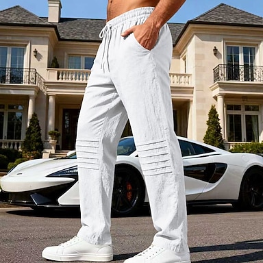 Homme Pantalons en Lin Pantalons Pantalons Amples Pantalons de Plage Cordon de serrage Avec Poches Uni Confort Respirant Longueur complète Quotidien Vacances Élégant Noir Blanche Non Elastique