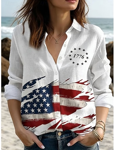 T-shirt graphique pour femme patriote du Jour de l'Indépendance imprimé du drapeau vintage mode élégante manches longues col rond hauts réguliers quotidien imprimé à zip bleu blanc rouge été printemps