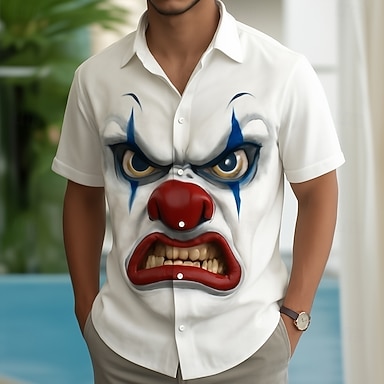 Homme Joker Dessin Animé 3D Visage en colère Chemise Chemise Boutonnée Manche Courte Drôle Extérieur Fête Été Printemps Col Rabattu Impression 3D chemises à col Blanc 1 Blanche Blanc 2 Blanc 3
