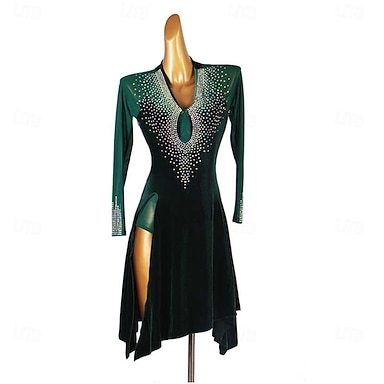 Danse salsa latine Robe Cristal / Strass Épissage Femmes Performance Soirée manche longue Spandex Fil Élastique