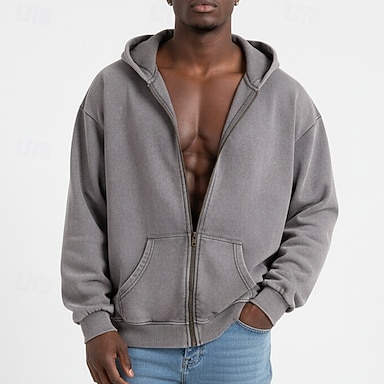 Homme Sweat à capuche Sweat à capuche zippé intégral Pull Abricot Noir Rose Claire Marron Gris À capuche Uni Fermeture éclair Occasionnel Quotidien Sport & Loisir ancien Frais Vêtements de sport