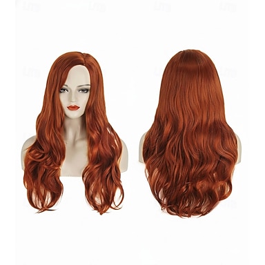 Perruques de cosplay Rouge Ondulé Cheveux synthétiques Long Perruques Femmes Perruques Pour la fête