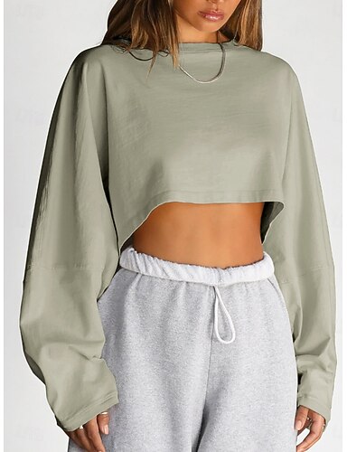Femmes Chemisier Patchwork Uni Actif Élégant manche longue Col ras du cou Hauts courts Vêtements de rue Fête Sortir Blanche Vert Claire Vert Gris foncé Beige Été Printemps