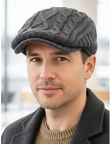 Bonnet béret en maille pour homme – doublé polaire pour plus de chaleur, plusieurs couleurs, design élégant en maille torsadée pour l'hiver.