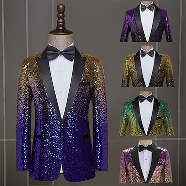 Rétro Vintage Années 1980 Couleur métalique brillante Smoking Costumes & Blazers Disco Paillettes Coupe ajustée Déguisement Homme Costume de Carnaval Noël Halloween Carnaval Défilé de la Fierté Mois