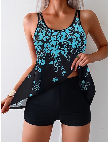Femme Maillots de Bain Tankini 2 pièces Jambe de garçon Maillot de bain Dos Nu Taille haute Vacances Tenues de plage Floral Col en U Sans Manches Maillots de bain