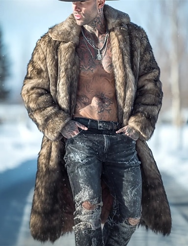 Homme Veste d'hiver Manteau en Fausse Fourrure Vacances Quotidien Chaleur Thermique Toison Automne Hiver Léopard Mode Streetwear Revers Long Fausse fourrure Blanche Marron Veste