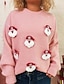 Femmes Pull Pompons cadeau de Noël Streetwear Fleuri Col ras du cou Tricoté manche longue Hauts Réguliers Tricoter Noël Fête Sortir Blanche Rouge Automne Hiver