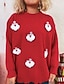 Femmes Pull Pompons cadeau de Noël Streetwear Lettre père Noël Col ras du cou Tricoté Imprimé manche longue Hauts Réguliers Tricoter Noël Quotidien Fête Rouge Automne Hiver