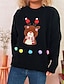 Femmes Pull Pompons cadeau de Noël Streetwear Renne de Noël Côtelé Col ras du cou Tricoté manche longue Hauts Réguliers Tricoter Noël Extérieur Fête Noir Rouge Automne Hiver