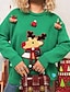 Femmes Pull Quotidien Occasionnel Graphique Arbre de Noël Côtelé Col ras du cou Tricoté Imprimé manche longue Hauts Réguliers Tricoter Extérieur Week-end Vert Automne Hiver