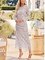 Femmes Robe Midi Robe moulante cocktail Robes semi-formelles Bureau Coupe régulière Graphique manche longue Col ras du cou Noir Blanche Rouge Été Automne