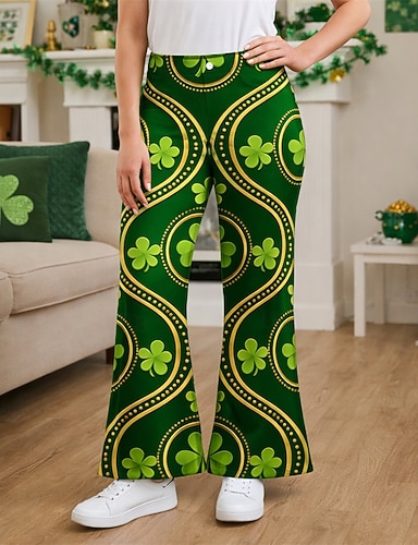 Saint-Patrick 2026 Rétro Vintage Années 1970 Pantalon Pantalons à pattes d'éléphant Hippie Disco Taille haute Déguisement Femmes Fête de la Saint-Patrick Soirée Festival Adulte Pantalon