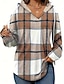 Femmes Sweat à capuche Plaid Occasionnel manche longue À capuche Hauts Réguliers Rue Tenue Quotidienne Imprimé Kaki Automne Hiver