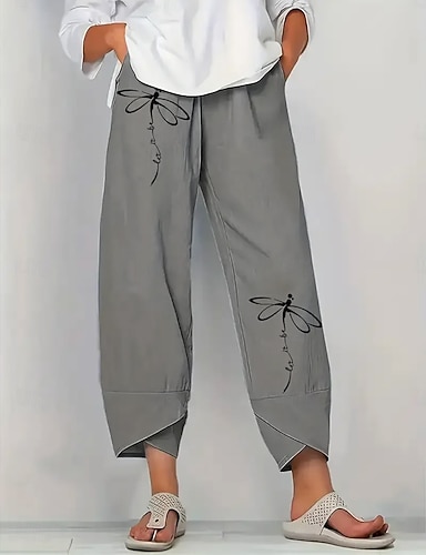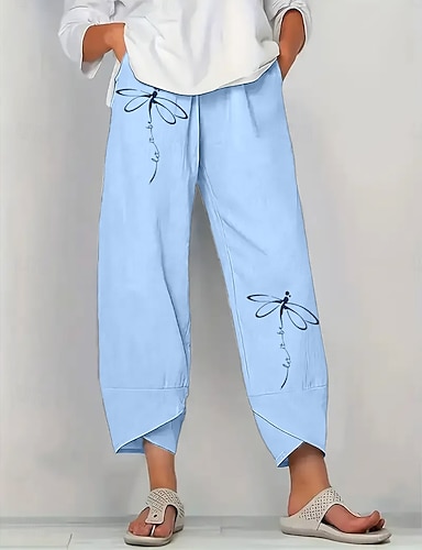 Culottes femme en lin comme pantalons à jambes larges chinos de vacances vintage style ethnique pleine longueur taille haute graphique floral cordon de serrage patchwork impression séchage rapide