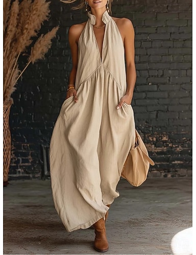 Femmes Robe Midi Robe trapèze Robe d'été Vacances Occasionnel Chaussures de plage Quotidien Fête Robe d'Été Coupe Ample Uni Sans manches Col Halter Bleu Noir Vin Beige Été