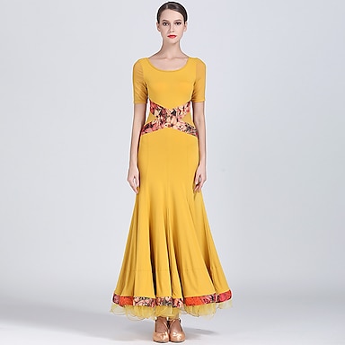 Danse de Salon Robe Plis Épissage Femmes Soirée Entraînement Performance manche longue Spandex Polyester