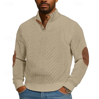 Homme Sweat-shirt Sweat à capuche Sweat-shirt quart de fermeture éclair Tricot côtelé Marron Col haut Col montant Uni Patchwork Texturé Occasionnel Quotidien Sport & Loisir Streetwear Frais Vêtements