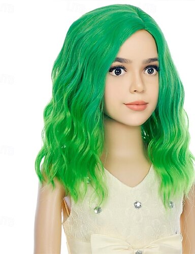 Perruque de cosplay 123 ondulée à milieu perruque de 26 pouces verte fluorescente cheveux synthétiques d'une seule couleur 70 pouces design à la mode pour femmes Halloween
