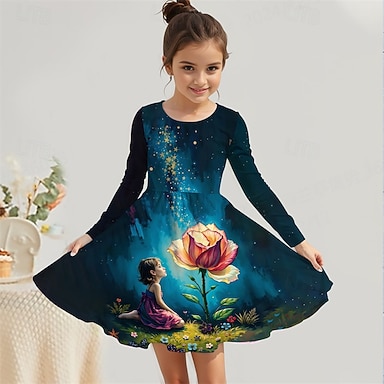 FILLE 3D Graphique Anime Robe manche longue Impression 3D Printemps Automne Performance Vacances Soirée Occasionnel Princesse Beau Enfants 4-12 ans Robe Décontractée Robe trapèze Mi-long Coupe