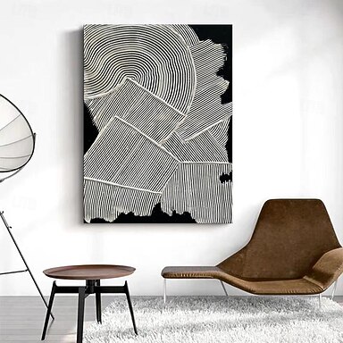 Peinture à l'huile faite à la main, décoration murale en toile, noir et blanc, texture simple, abstraite pour la décoration intérieure, peinture roulée sans cadre, non étirée