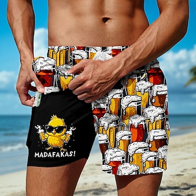 Homme Drôle Bière Oktoberfest Canard Short doublé Short de bain 2 en 1 Shorts de bain Taille Moyenne Hawaïen Fête Tenue de plage Poches Latérales Avec doublure de compression Taille élastique avec