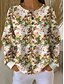 Sweat-shirt de Noël pour femme, imprimé sapin de Noël, style vintage élégant, manches longues, col rond, coupe classique, idéal pour la maison et le quotidien, boutons, bleu et jaune, automne-hiver