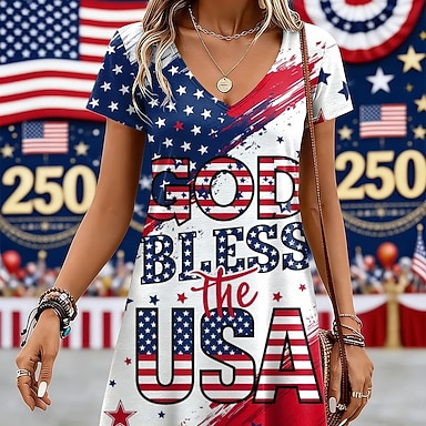 Jour de l'Indépendance Américaine Femmes Mini Robe Robe T-Shirt Robe trapèze Robe d'été Occasionnel Quotidien Coupe régulière Fleuri Graphique Manche Courte Col Rond bleu marine Été Printemps