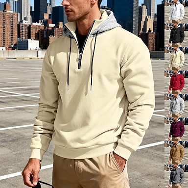 Homme Sweat à capuche Sweat à capuche quart zippé Sweat à capuche en polaire Abricot Rouge vin Noir Blanche Rouge À capuche Uni Patchwork Bloc de Couleur Sport & Loisir Occasionnel Quotidien