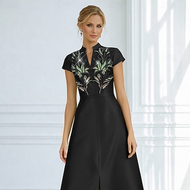 Fourreau Colonne Traîne Balayage Robes de Cocktail Robe de bal avec surjupe Élégant Scintillant Éclat Manche Courte Col en V Soirée Fête de jardin Taffetas Dos Bénitier avec Imprimé floral Paillettes