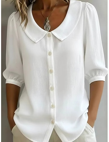 Tunique pour femme 100% coton boutons graphique uni élégante à manches courtes col rond régulier sortant au quotidien blanc rose kaki gris été printemps automne