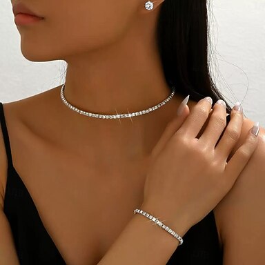 Parure de bijoux 3 Chrome 1 Collier 1 Bracelet Boucles d'oreilles Femmes Élégant Parure de Bijoux Pour Soirée Mariage