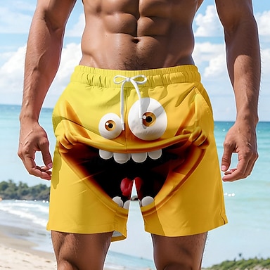 Homme Dessin Animé 3D Expression du visage Maillots de bain Shorts de bain Shorts de Surf Taille Moyenne Drôle Vacances à la Plage Poches Latérales doublure en maille Taille élastique avec cordon de