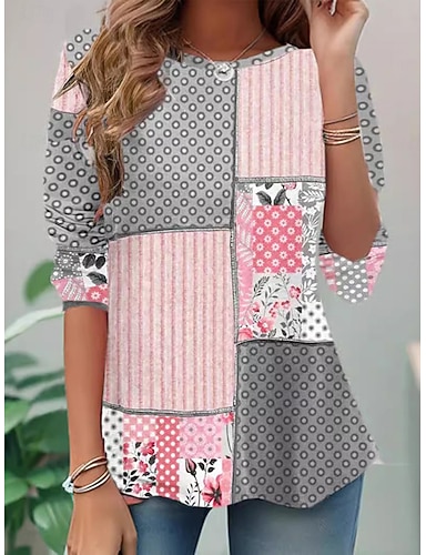 T-shirt femme à manches longues col rond tunique à manches longues graphique floral vintage élégant classique à demi-manches col rond hauts réguliers impression quotidienne rose orange rose pâle