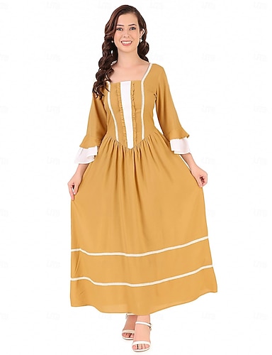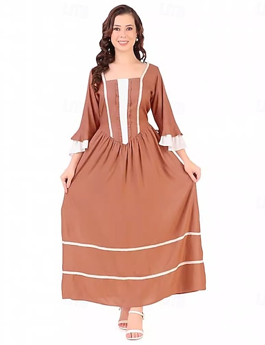 Deux pièces A-Line longueur thé Robe de fête Robe cocktail Robe invitée de mariage Robe Maman de la mariée à manches longues Col en chemise Élégante Vintage Fête Formelle avec plis Bloc de couleur.