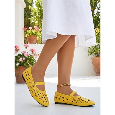 Ballerines Mary Jane blanches pour femmes, découpées au laser - ballerines ajourées et respirantes avec bride à boucle, idéales pour les séjours en plein air et les vacances tropicales. &voyage d'été